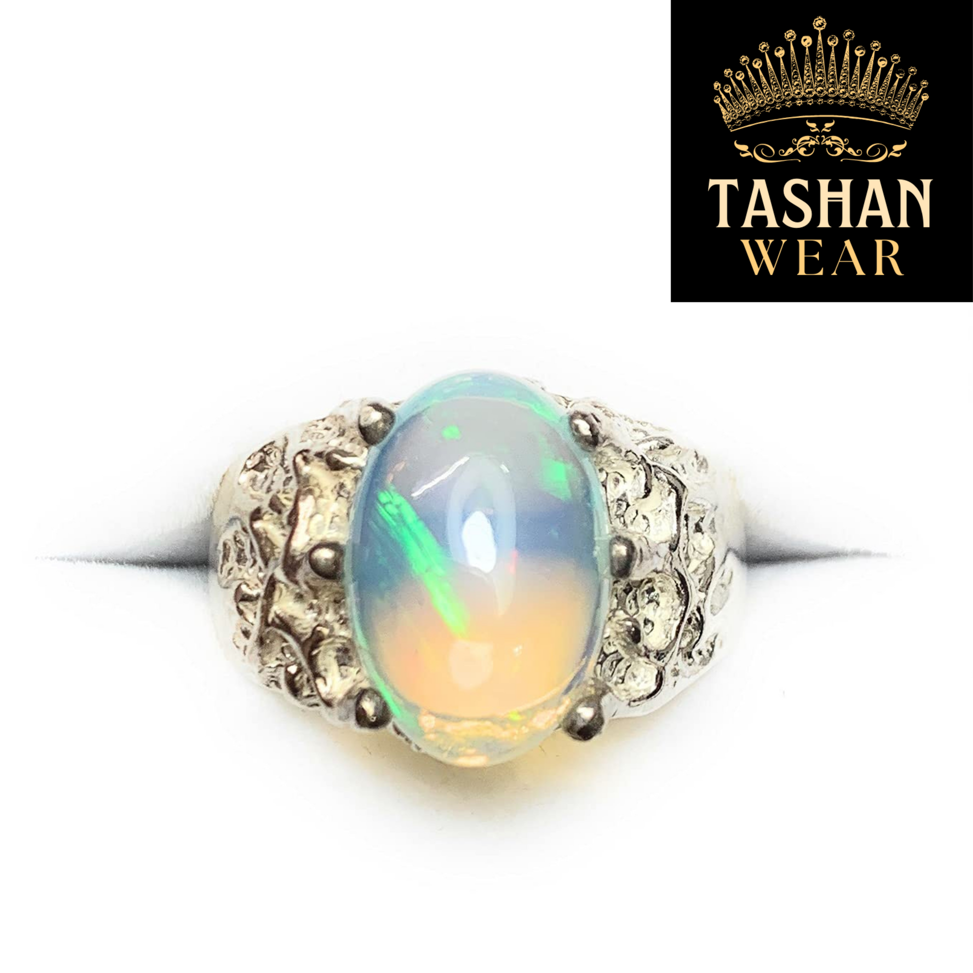 خوبصورتی اور مثبت توانائی کے ساتھ جگمگائیں اس قدرتی اوپل پتھر کی رنگ کے ساتھ، جو خالص چاندی میں تیار کی گئی ہے اور ہر سائز کے لیے موزوں ہے۔ اوپل اپنی رنگین چمک (فائر ایفیکٹ) کے لیے مشہور ہے اور فیشن کے ساتھ روحانی مقاصد کے لیے بھی بہترین ہے۔