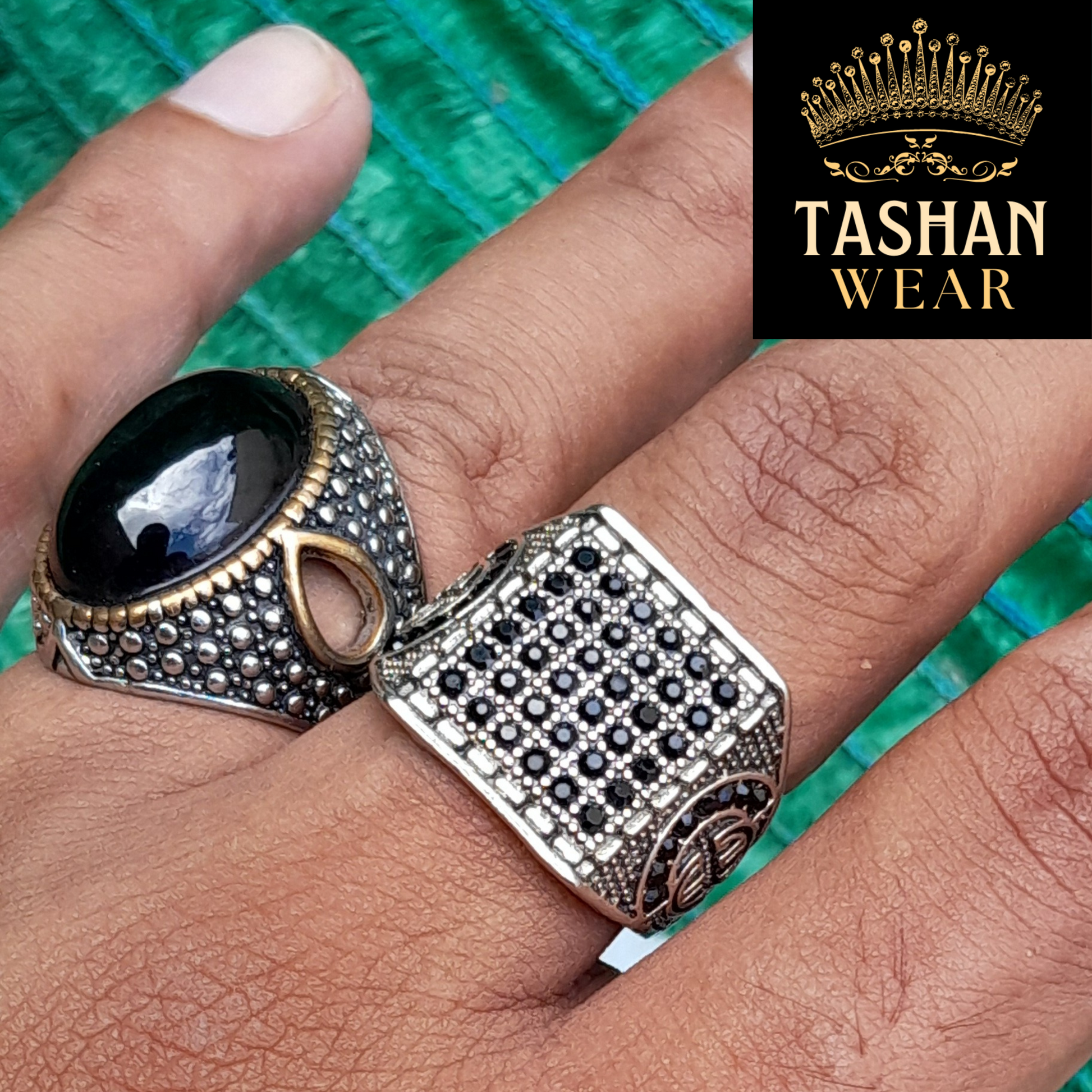 Enhance your style with this Original Black Aqeeq Stone Turkish Ring, crafted with elegance and tradition. Known for its deep black shine, Aqeeq (Agate) is a gemstone of strength, protection, and positivity.