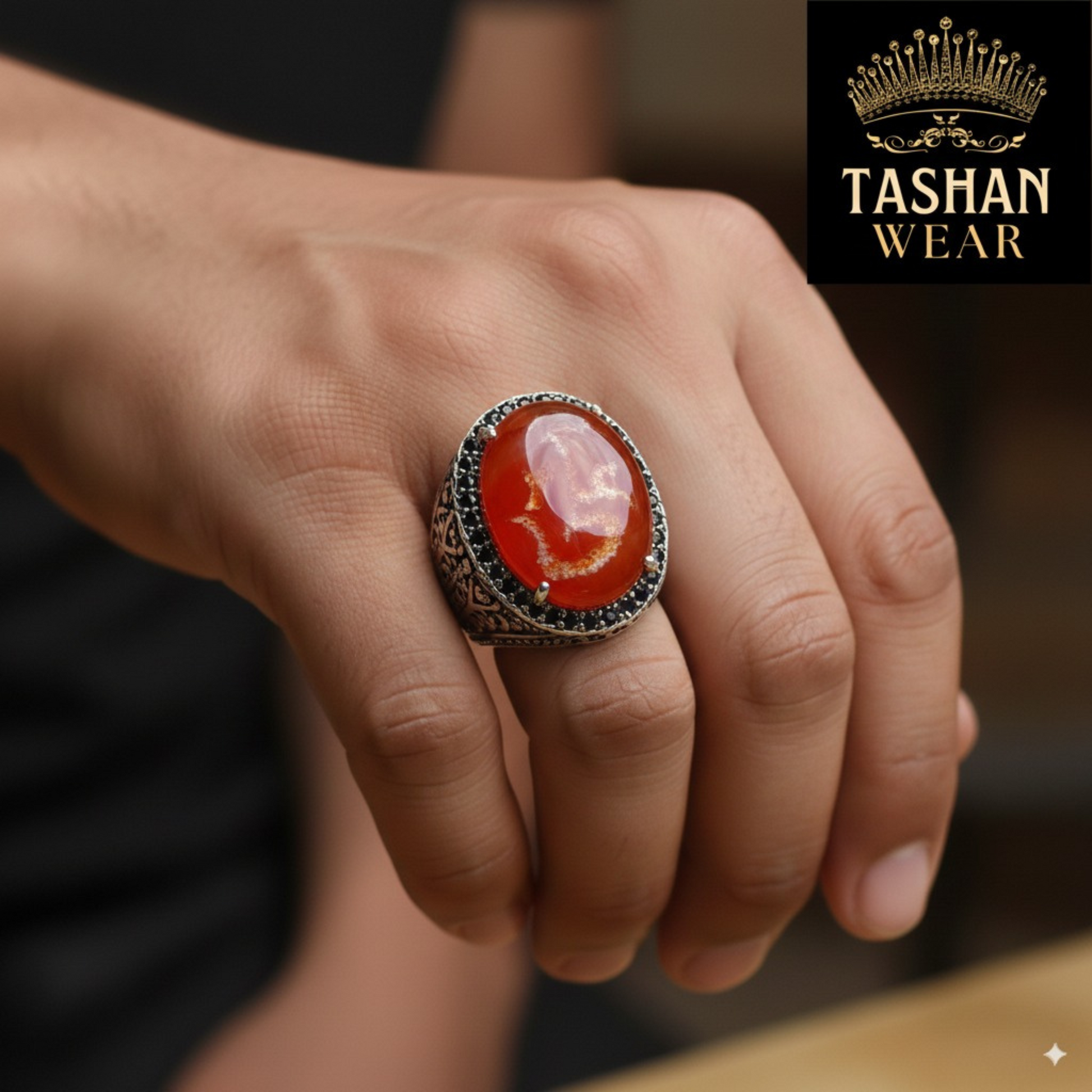 Bring balance, protection, and blessings into your life with this Natural Sulemani Aqeeq Stone Ring, beautifully crafted in pure silver with a weight of 14.85 carats. Designed with an adjustable size, this ring combines classic elegance with spiritual value.