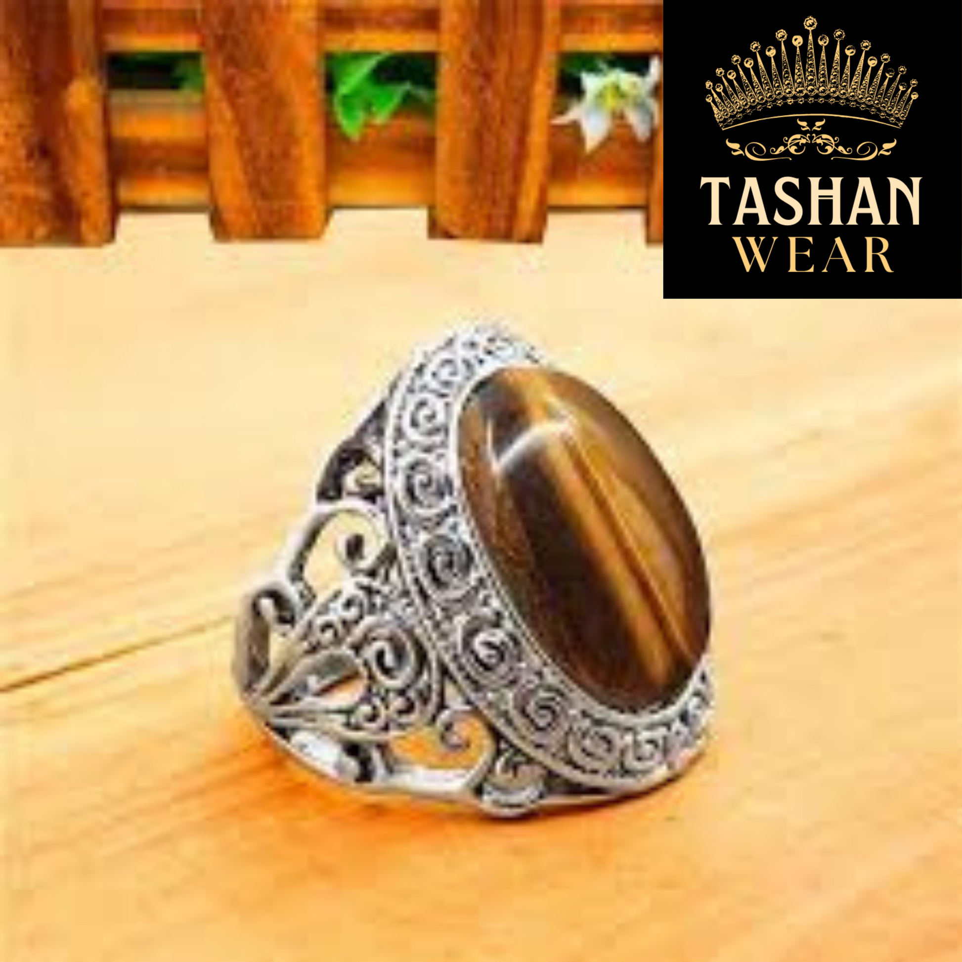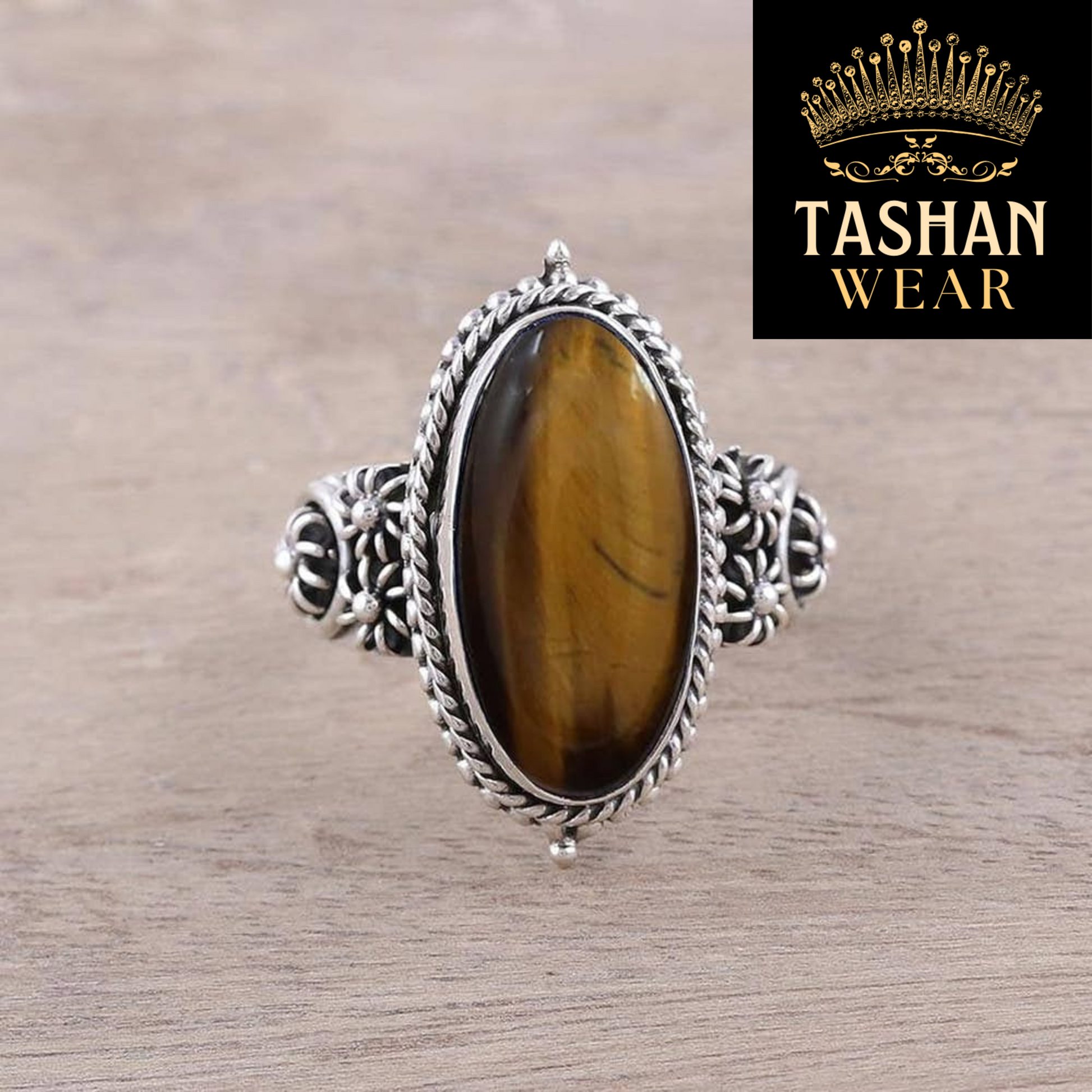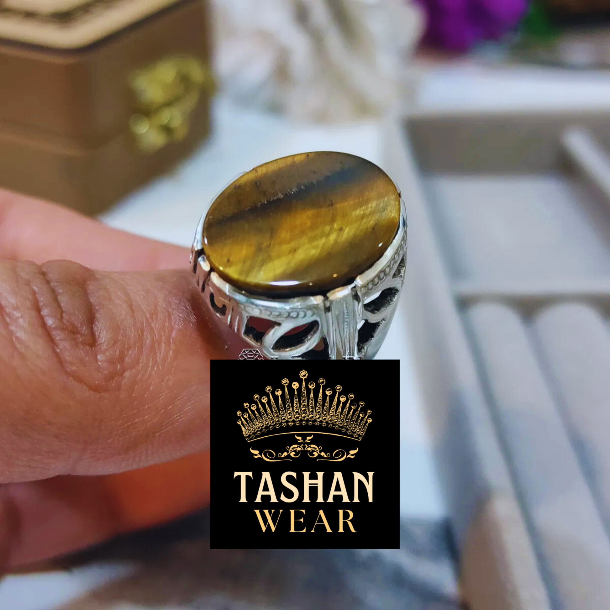 🐅 Natural Tiger Stone Ring – Premium Stainless Steel Finish